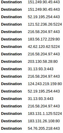 Se as permissões forem dadas, o aplicativo irá coletar números de telefone, códigos IMEI, endereço MAC e coordenadas GPS, dados que ele cuidadosamente empacota e envia para uma série de servidores na China. FourOctets realizou uma série de testes e compilou uma lista de IPs para onde o aplicativo envia os dados do usuário.