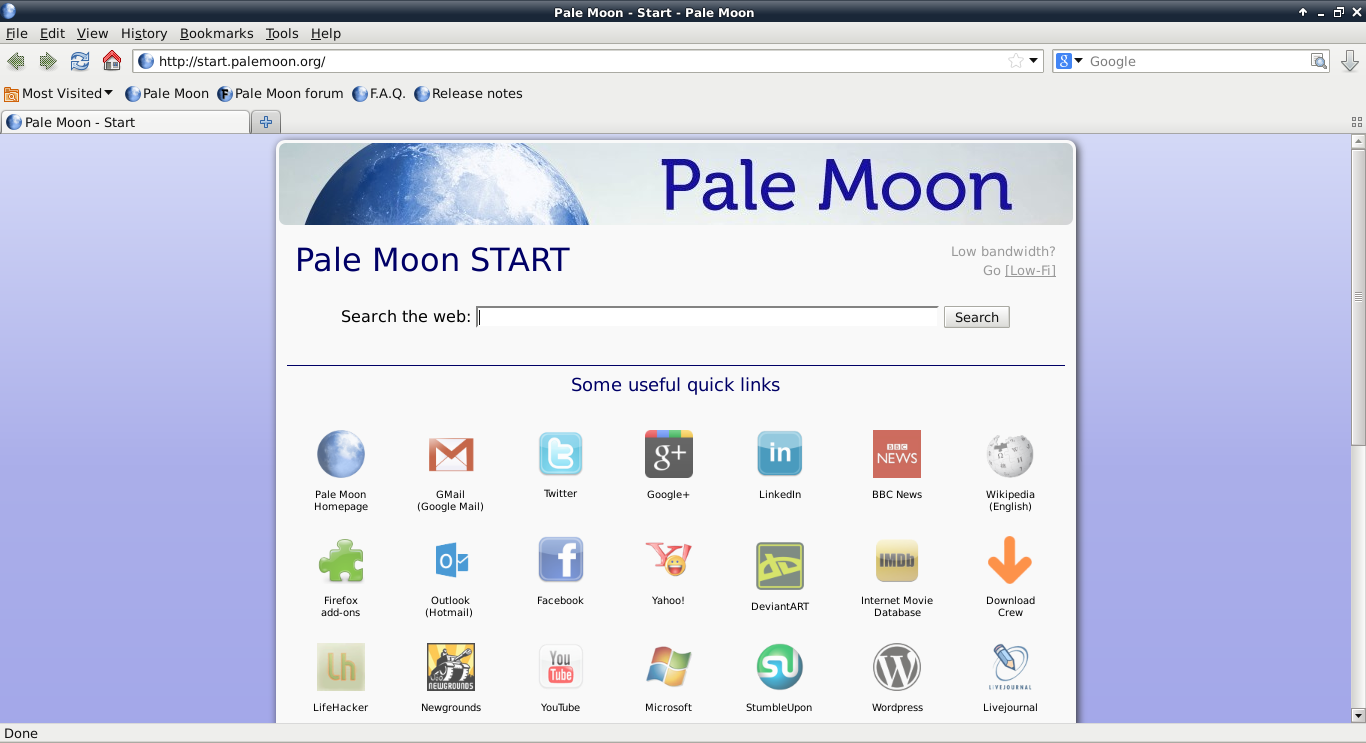 O Navegador Mozilla Firefox ganha milhares de novos usuários e tem milhões de downloads diários e você pode instalar no Ubuntu, Linux Mint, Elementary OS, Pinguy OS, Debian, Fedora, CentOS, OpenSUSE, Mageia, OpenMandriva e Arch Linux. Sua versatilidade, estabilidade e rapidez são só alguns dos fatores que chamaram atenção de toda essa gente! O Pale Moon é uma recompilação do Firefox, feita com o objetivo de melhorar ainda mais o desempenho deste magnífico navegador.