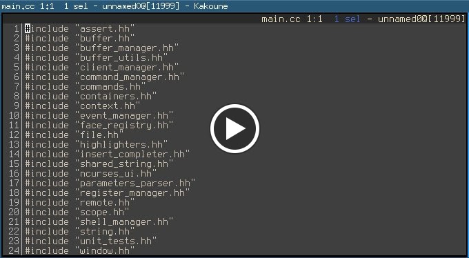 Kakoune é um editor de código fortemente inspirado pelo Vim, como tal, a maioria dos seus comandos são semelhantes aos do Vi, e compartilha o modelo “teclas digitadas como uma linguagem de edição de texto” do Vi.