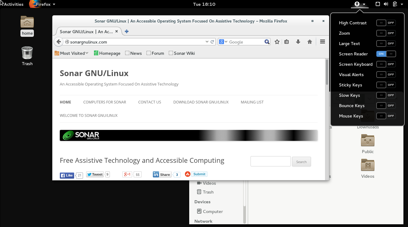 “Sonar GNU/Linux é um sistema operacional acessível focado em tecnologia assistiva. Ele é focado em ser o sistema operacional mais acessível disponível, usando tecnologia assistiva gratuita. Um grande agradecimento vai para Kyle Brouhard por realizar este lançamento. Ele trabalhou muito para isso… “