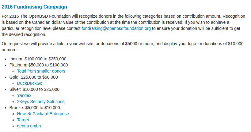 No ano passado antes mesmo do ano acabar, a Microsoft já havia fechado o ano como parceiro ouro da fundação openBSD, pois é, este ano tudo esta diferente, parece que a empresa não doou nada para o projeto e não se encontra mais na lista de parceiros em nenhuma modalidade.