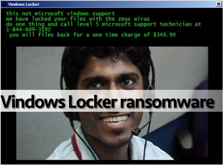 Um novo ransomware chamado “Vindows Locker” infecta os computadores e criptografa seus arquivos com a extensão .vindows, com o objetivo de convencer os usuários a ligarem para um número de suporte da Microsoft que repararia o sistema em troca de dinheiro.