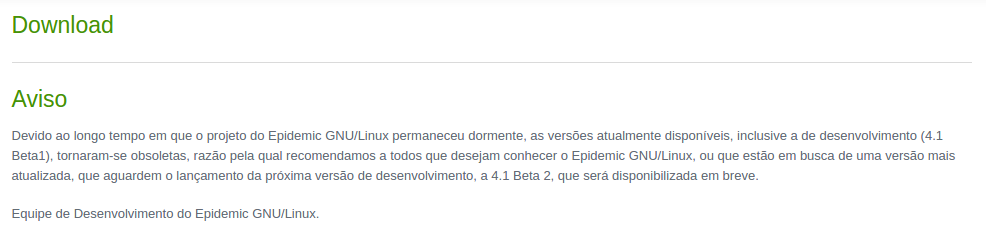 Hoje quando fomos verificar algumas distribuições para fazer nossas análises e até verificar as novidades, fomos surpreendidos ao entrar na página de download do Epidemic e verificar a última versão disponível, quando por fim nos deparamos com a seguinte mensagem.