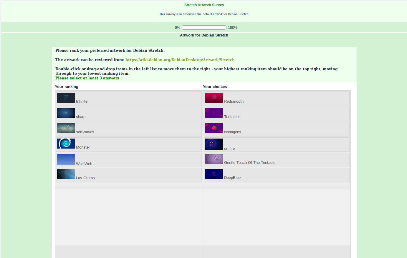 Clicando aqui você poderá votar e escolher o tema de desktop que mais lhe agradar para o Debian GNU/Linux 9 Stretch.