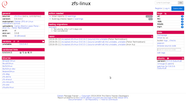 Na tarde do dia 15 de maio de 2016, Donald Norwood que é da equipe de publicidade Debian, informou que o ZFS para a implementação Linux não está disponível para instalação nos repositórios de software “principais” do Debian GNU/Linux , como dissemos no nosso relatório anterior, a atualização esta liberada nos repositórios “contrib”, os repositórios de teste do Debian.