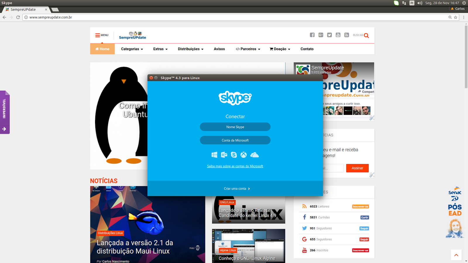 Clicando aqui você poderá baixar o Skype para Linux diretamente do site oficial, ou então poderá baixá-lo e instalá-lo com os simples comandos abaixo: